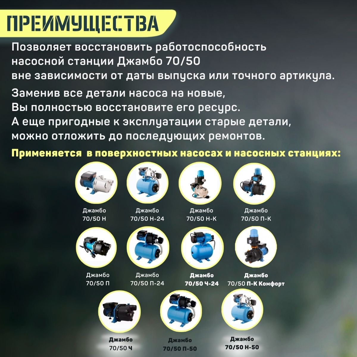 Подходит для ремонта насосов и насосных станций Джилекс Джамбо 70/50.